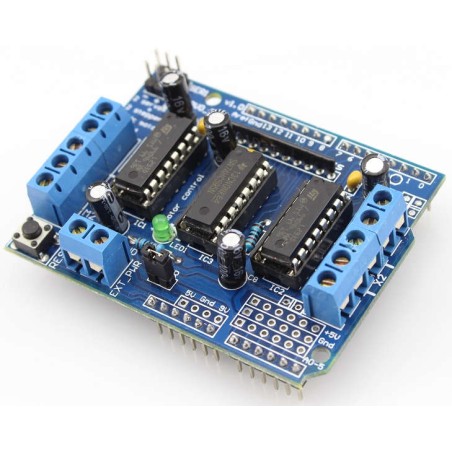 Puede manejar 4 motores DC o dos 4-wire stepper 2 servos de 5V.