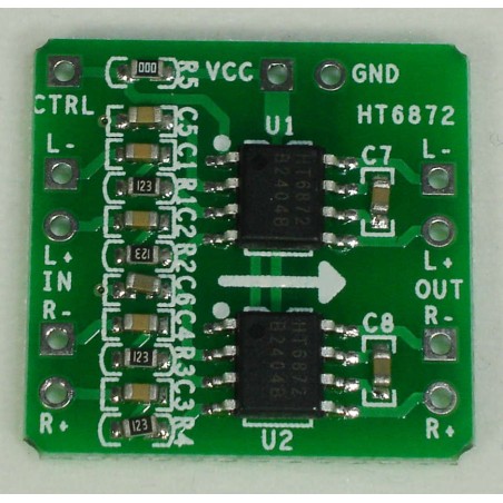 Placa que monta dos módulos de amplificador HT6872. Amplificador de clase D y 4.7W.